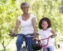 Answer: Riding their bike